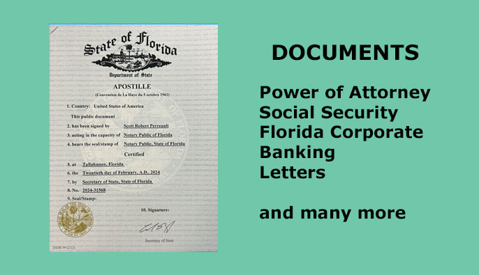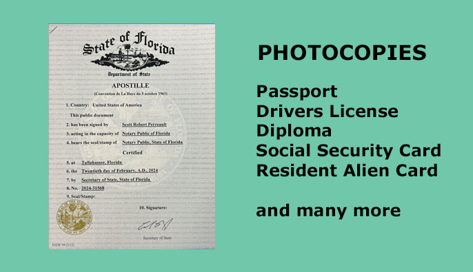 ♦$155 – Each additional Notarized Document/Original Florida Certificate/Notarized Photocopy