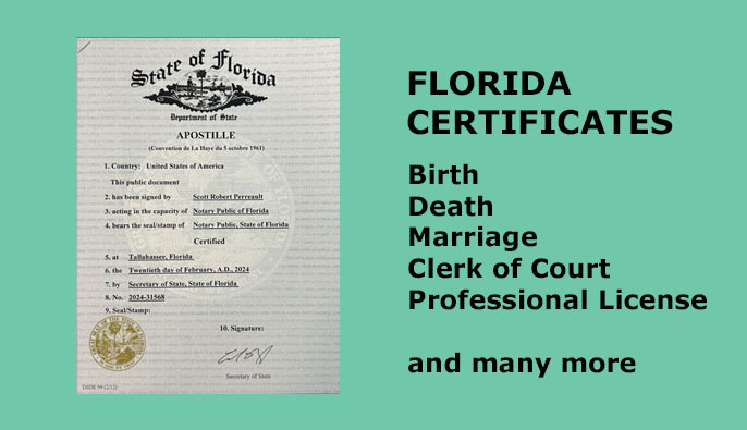 ♦$295 - First Notarized Document/Original Florida Certificate/ Notarized Photocopy submitted to